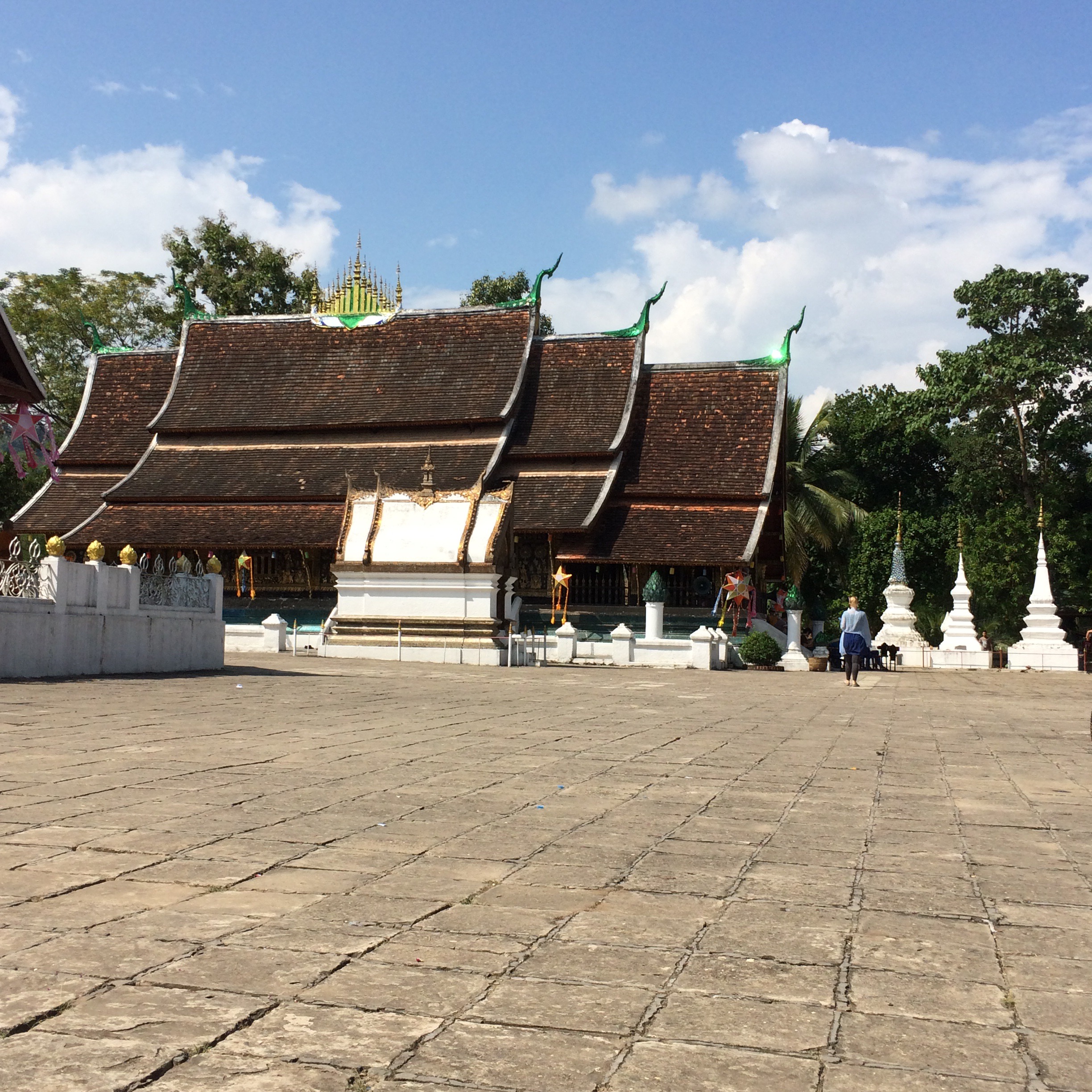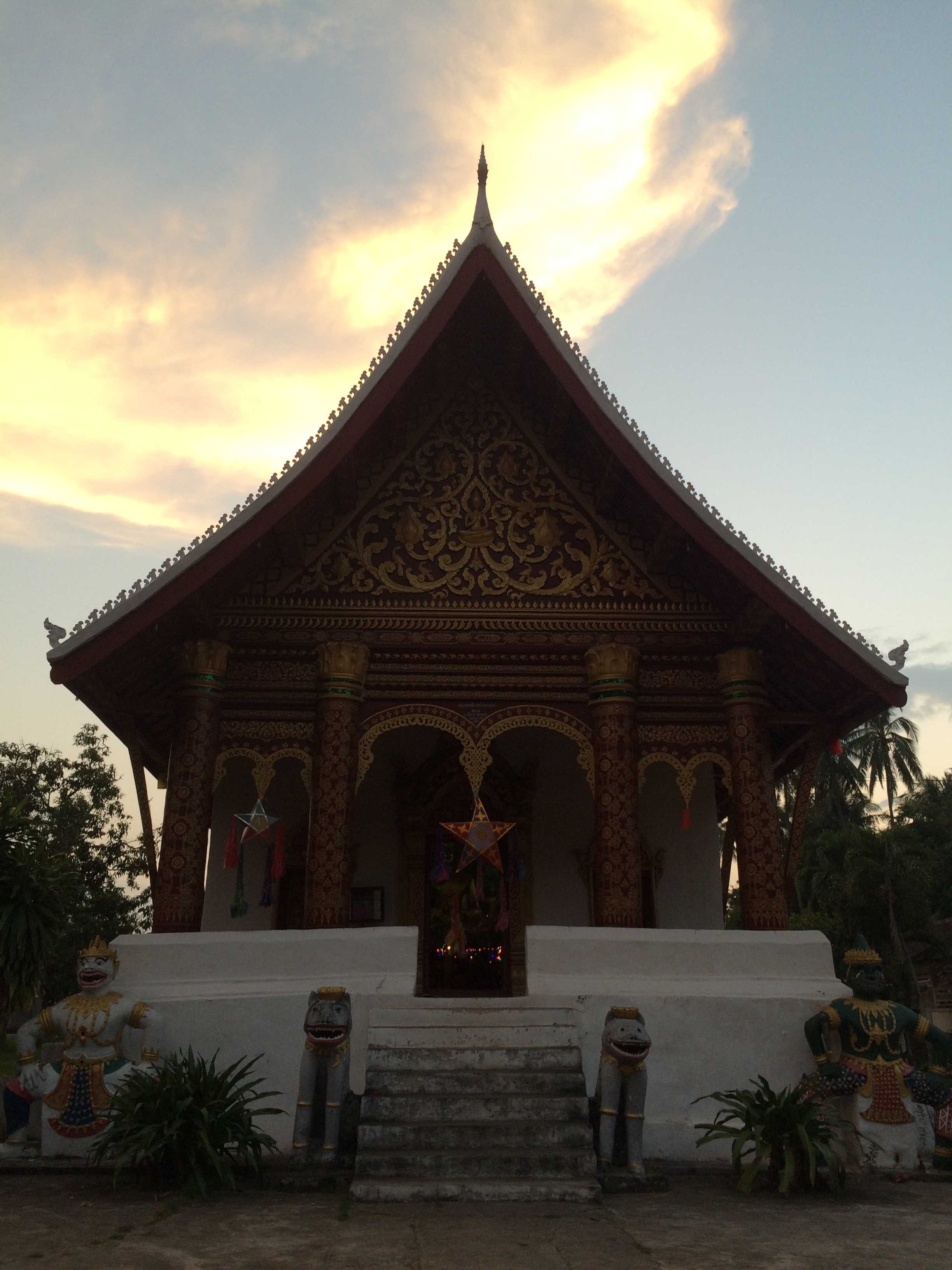 – auf dem Sitz des geliehenen Fahrrads das Weltkulturerbe Luang Prabang entdecken. Nicht nur der Stilmix aus französischer Kolonial- sowie klassisch asiatischer Architektur macht Luang Prabang so besonders, sondern auch die Vielzahl der buddhistischen Tempel! Mit dem Fahrrad können die meisten Tempel innerhalb weniger Minuten erreicht werden. Meine absoluten Tempel-Highlights waren der älteste Tempel Wat Xieng Thong der stilvolle und abwechslungsreiche Wat Sensoukharam sowie der mythische und verborgen wirkende Wat Aham, der vor allem zu Sonnenuntergang seine vollständige Anmut entfaltet! Dazu trägt vor allem auch die links neben dem Tempelgelände gelegene verwitterte Stupa bei. Genauso ergeht es einem beim Besuch des südöstlich und außerhalb der Innenstadtgrenzen gelegenen Vatthaluang Rasamahavihane. Doch damit nicht genug, denn diese kleine, relaxte Stadt ist vor allem auch deswegen so entspannt und liebenswert, da sie komplett mit dem Fahrrad er- und umfahren werden – am Mekong entlang oder durch die Seitenstraßen und Gassen der Altstadt inklusive lauwarmem Fahrtwind und Sonnenstrahlen auf der Haut! Chil-Laos at its best!