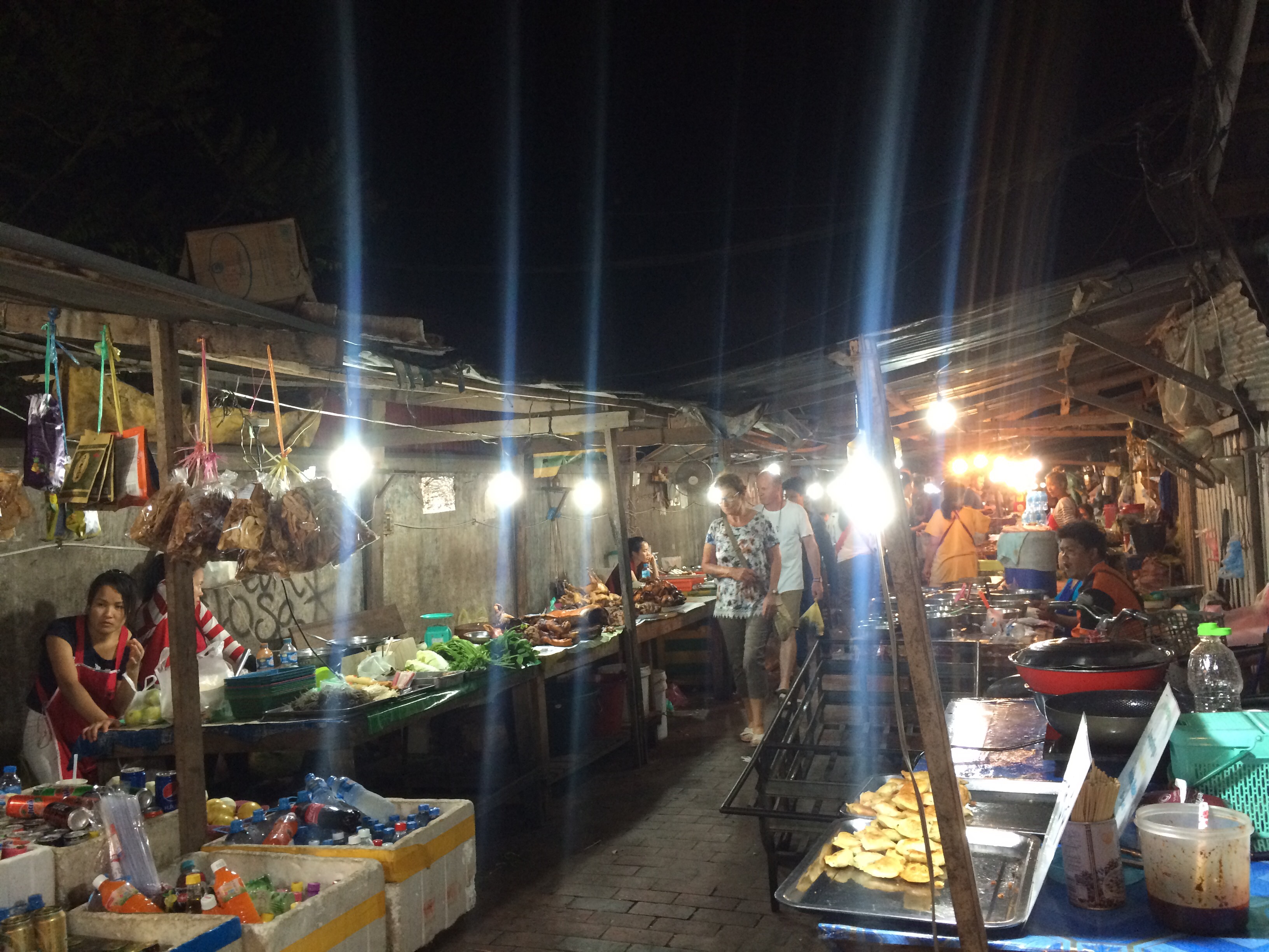 – den Tag bei Streetfood auf dem Night Market ausklingen lassen! Auch hier wimmelt es nur so vor Touristen, doch wer wirklich abtauchen will, der sucht eine der wenigen Suppenküchen am Wegesrand auf. Mit einem Sitzplatz mit Blick auf die Straße kann man den Tag Löffel um Löffel Revue passieren lassen sowie so beschließen, wie man ihn begonnen hat, und neugierig das Treiben um sich herum vorbeiziehen lassen. Wer nach den sättigenden und herzhaften Laotischen Nudelsuppen immer noch hungrig ist, der findet in der Street-Food-Meile (links vor dem Ancient Luang Prabang Hotel) oder dem vegetarischen Buffet ein paar Straßen weiter sicher noch Sättigung.