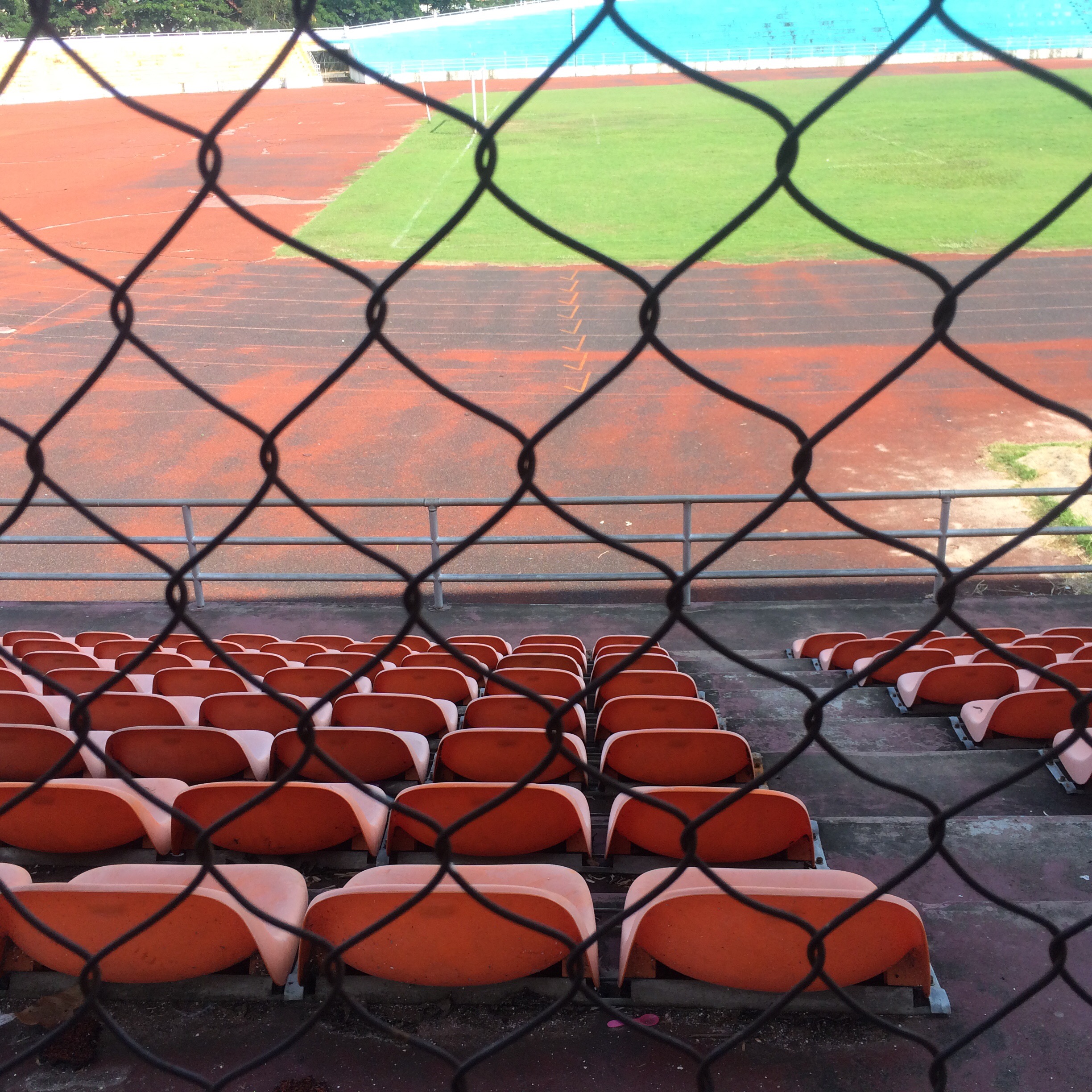 Bienvenue au Stade de Loungprabang! Schon wieder ein Fussballartikel?! Na, dann ‚bonne nuit‘! Nicht ganz, dennoch fühle ich mich gerade in diesem Augenblick vor dem Stadion schon wieder wie in einer anderen, vollkommen vertrauten Welt. Das charmant baufällige und in Teilen in einen ‚Wohnkomplex‘ sowie eine Müllhalde umgewandelte Stade de Loungprabang empfängt mich bei schwül-heißen 35 Grad. Vor den historischen Stadiontoren sitzen einige Laoten im Schatten und schenken dem wundersamen, vollkommen durchgeschwitzten, bärtigen Westler, der barfüßig von seinem klapprigen Fahrrad absteigt, in seine Flip Flops schlüpft und sofort begeistert seine Kamera zückt, wenig Beachtung!